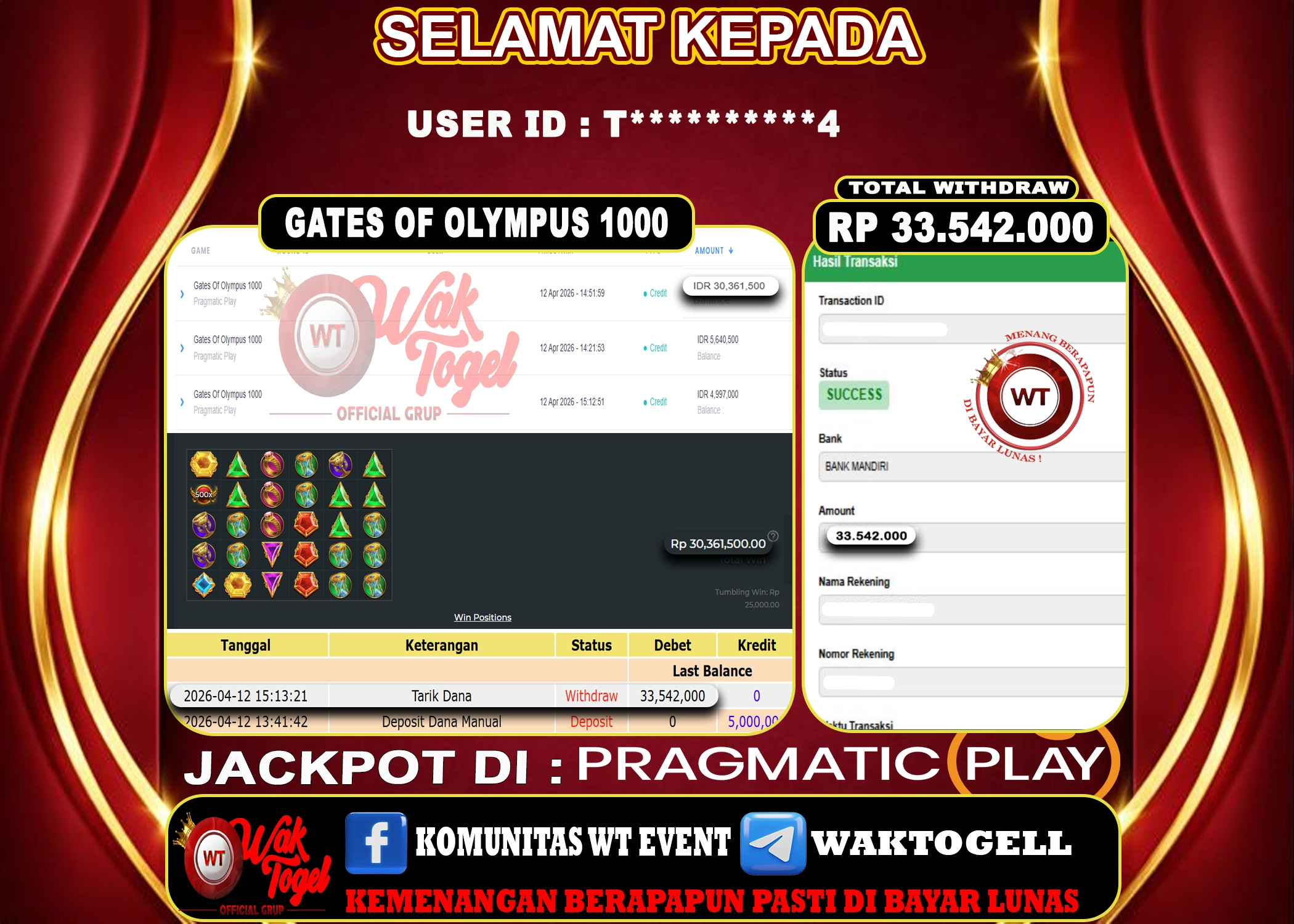 JACKPOT SLOT WAKTOGEL BUKTI PEMBAYARAN SLOT WAKTOGEL By JPWT April 12, 2026 0 comments 2 min read BUKTI PEMBAYARAN SLOT WAKTOGEL BUKTI PEMBAYARAN SLOT WAKTOGEL RP. 30,361,500 – GAME : SLOT GATES OF OLYMPUS 1000 (USER ID : T**********4) TANGGAL |12-04-2026| CASH […]