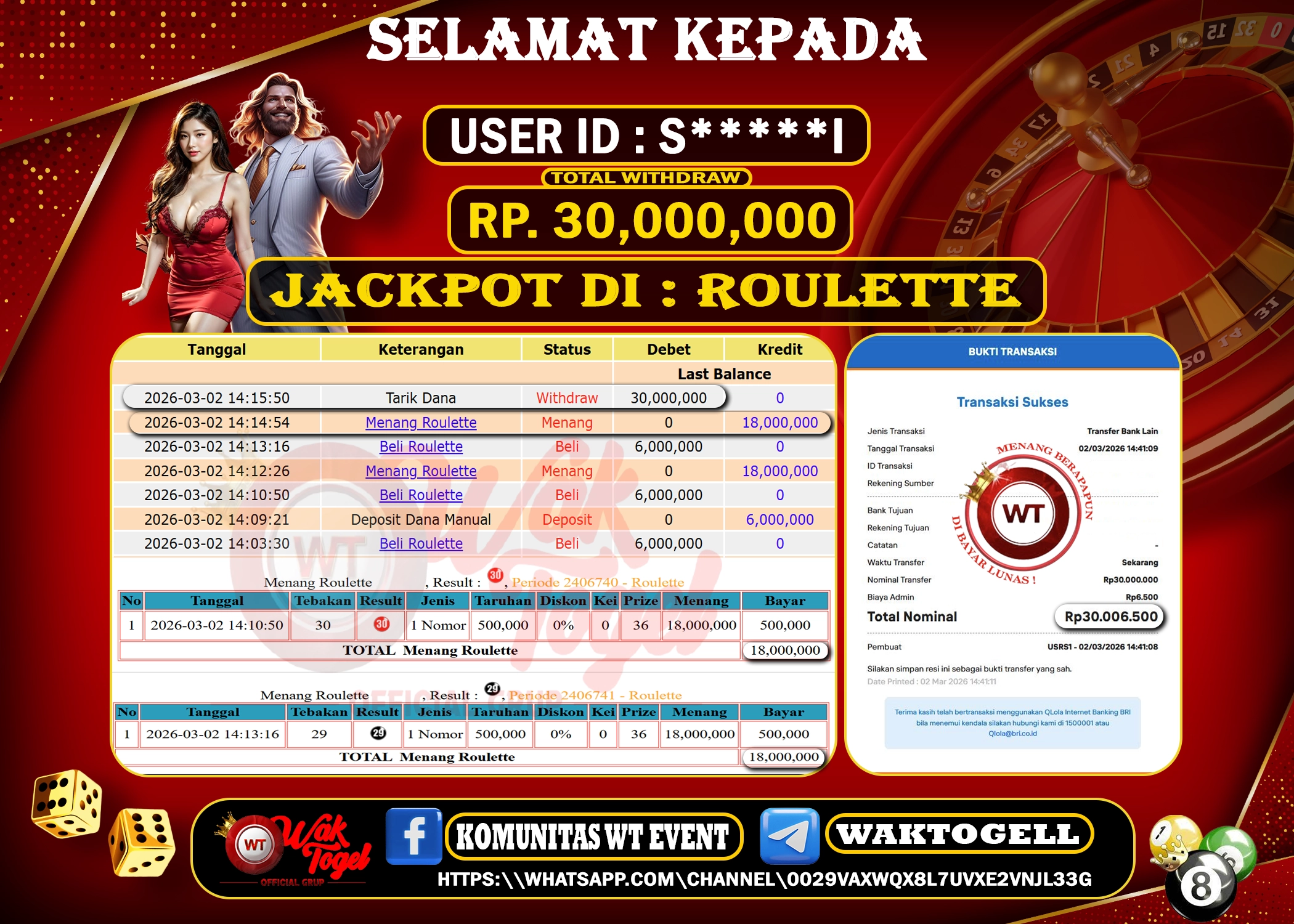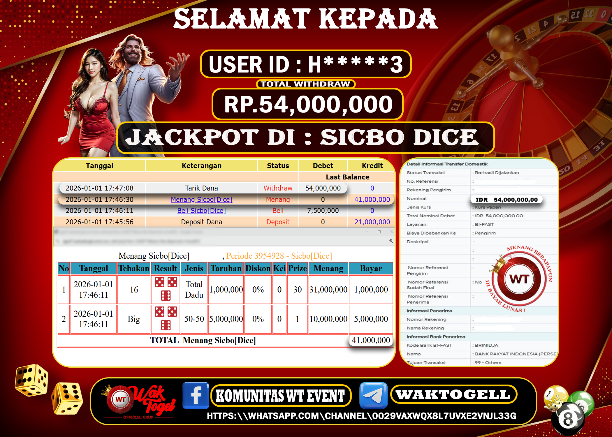 Bukti Pembayaran Jackpot Waktogel Untuk SLOT, TOGEL , LIVECASINO