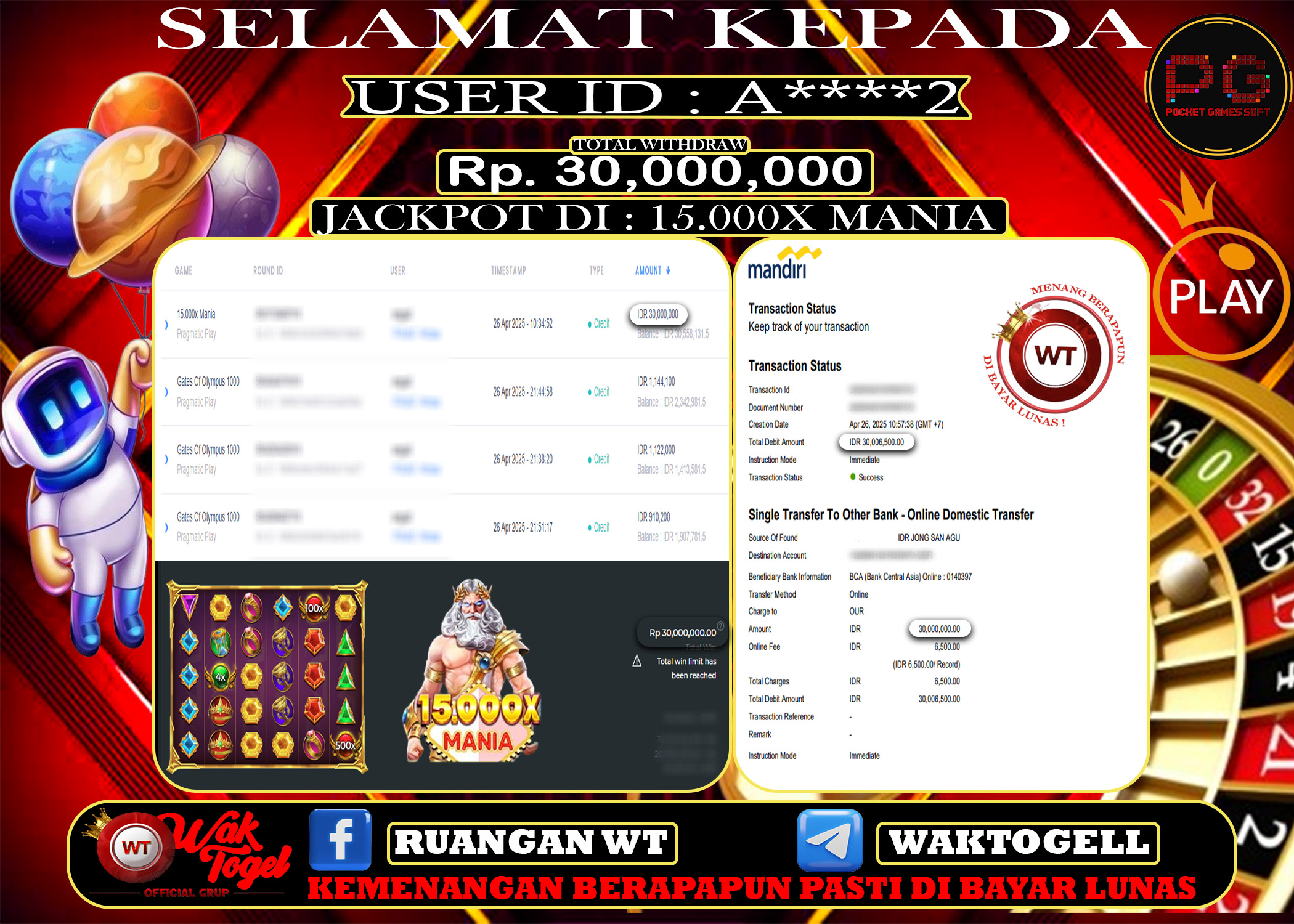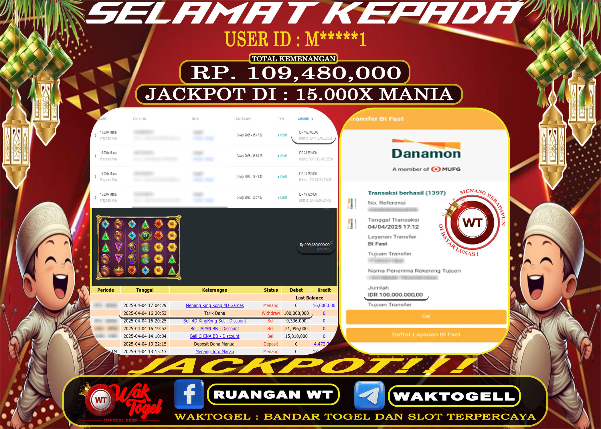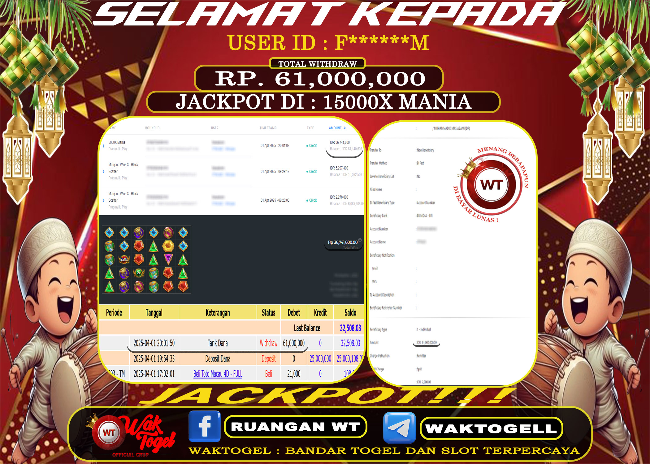 Bukti Pembayaran Jackpot Waktogel Untuk SLOT, TOGEL , LIVECASINO