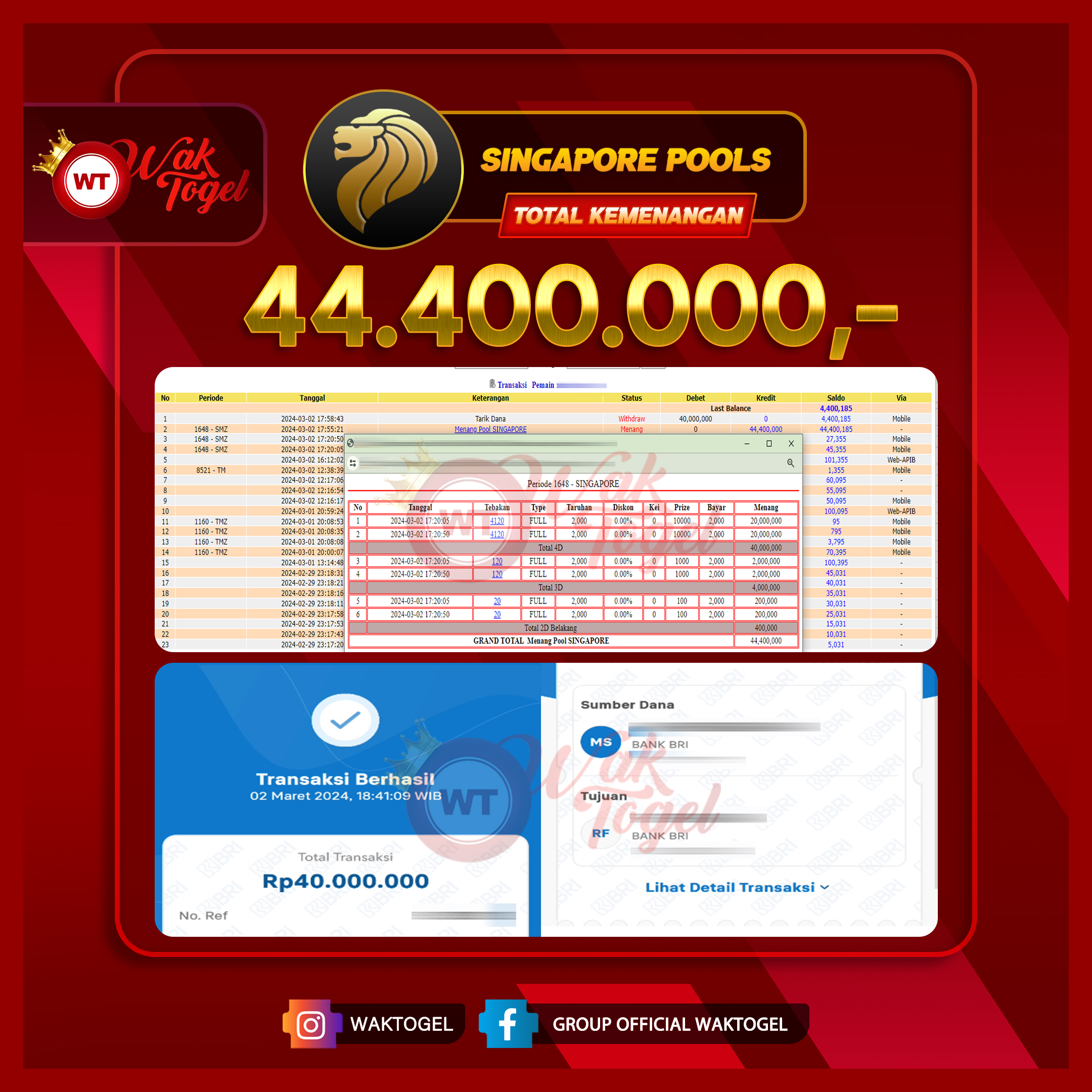 JACKPOT TOGEL WAKTOGEL BUKTI PEMBAYARAN SINGAPORE WAKTOGEL By JPWT Februari 1, 2024 0 comments 2 min read BUKTI PEMBAYARAN SINGAPORE WAKTOGEL BUKTI PEMBAYARAN SINGAPORE WAKTOGEL RP. 40.000.000 GAME : TOGEL SINGAPORE POOLS TANGGAL (USER ID : K*****1) |31-01-2024| CASH LUNAS ! Kami […]
