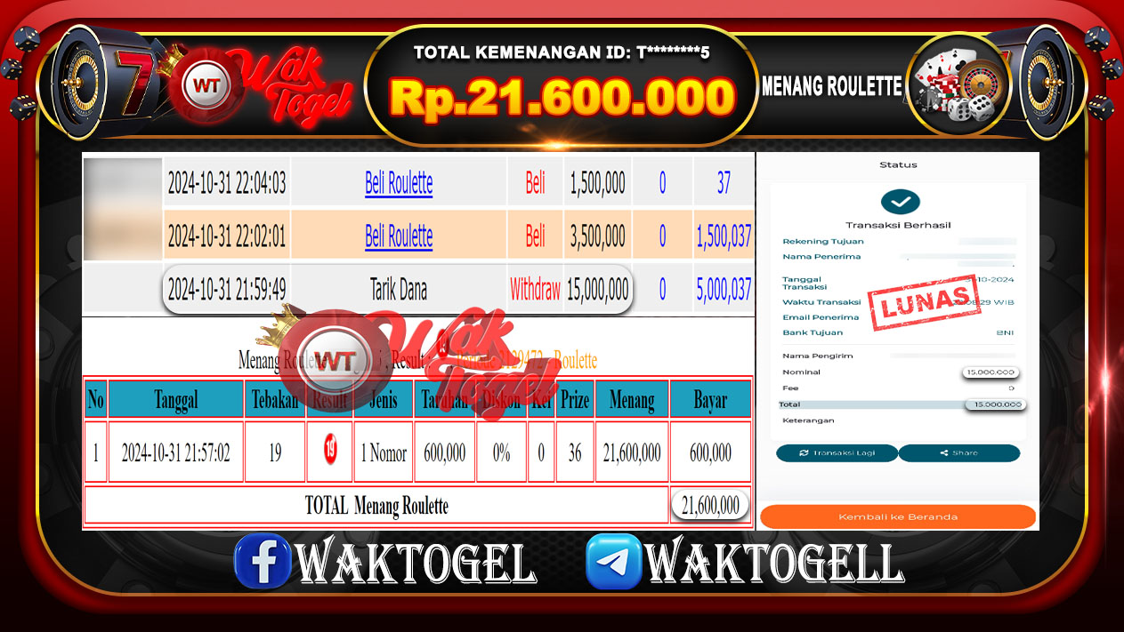 JACKPOT CASINO WAKTOGEL BUKTI PEMBAYARAN ROULETTE WAKTOGEL By JPWT November 1, 2024 0 comments 2 min read BUKTI PEMBAYARAN ROULETTE WAKTOGEL BUKTI PEMBAYARAN ROULETTE WAKTOGEL RP. 21.600.000 – GAME : ROULETTE (USER ID : T********5) TANGGAL |31-10-2024| CASH LUNAS ! Kami ucapkan […]
