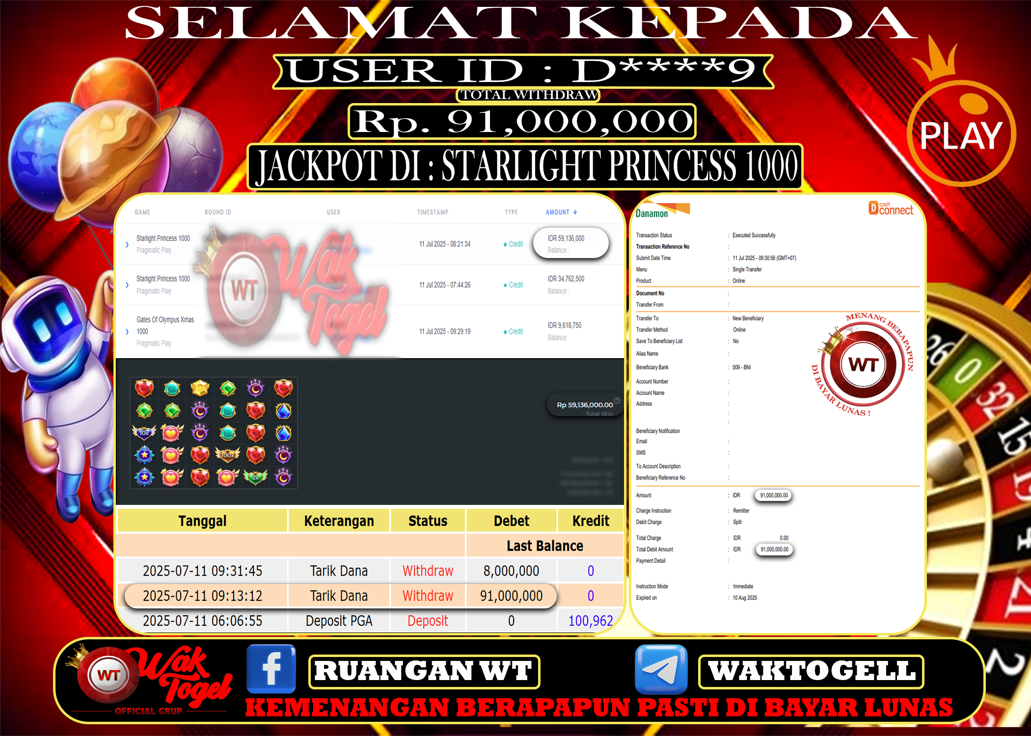 JACKPOT SLOT WAKTOGEL BUKTI PEMBAYARAN SLOT WAKTOGEL By JPWT Juli 11, 2025 0 comments 2 min read BUKTI PEMBAYARAN SLOT WAKTOGEL BUKTI PEMBAYARAN SLOT WAKTOGEL RP. 91,000,000 – GAME : SLOT STARLIGHT PRINCESS 1000 (USER ID : D****9)TANGGAL|11-07-2025| CASH LUNAS ! Kami […]