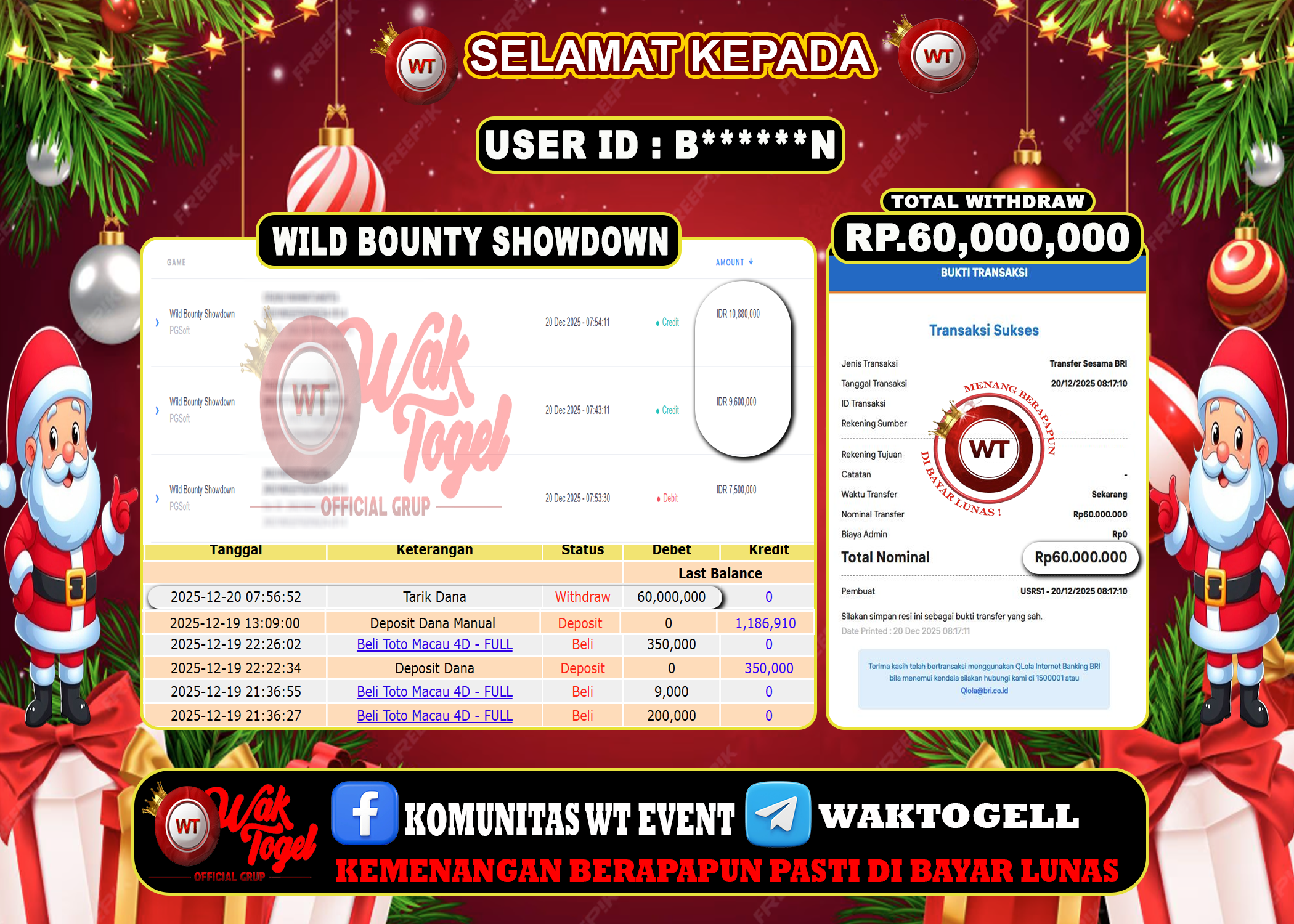 JACKPOT SLOT WAKTOGEL BUKTI PEMBAYARAN SLOT WAKTOGEL By JPWT Desember 20, 2025 0 comments 2 min read BUKTI PEMBAYARAN SLOT WAKTOGEL BUKTI PEMBAYARAN SLOT WAKTOGEL RP. 60,000,000 – GAME : SLOT WILD BOUNTY SHOWDOWN (USER ID : B******N) TANGGAL |20-12-2025| CASH LUNAS […]