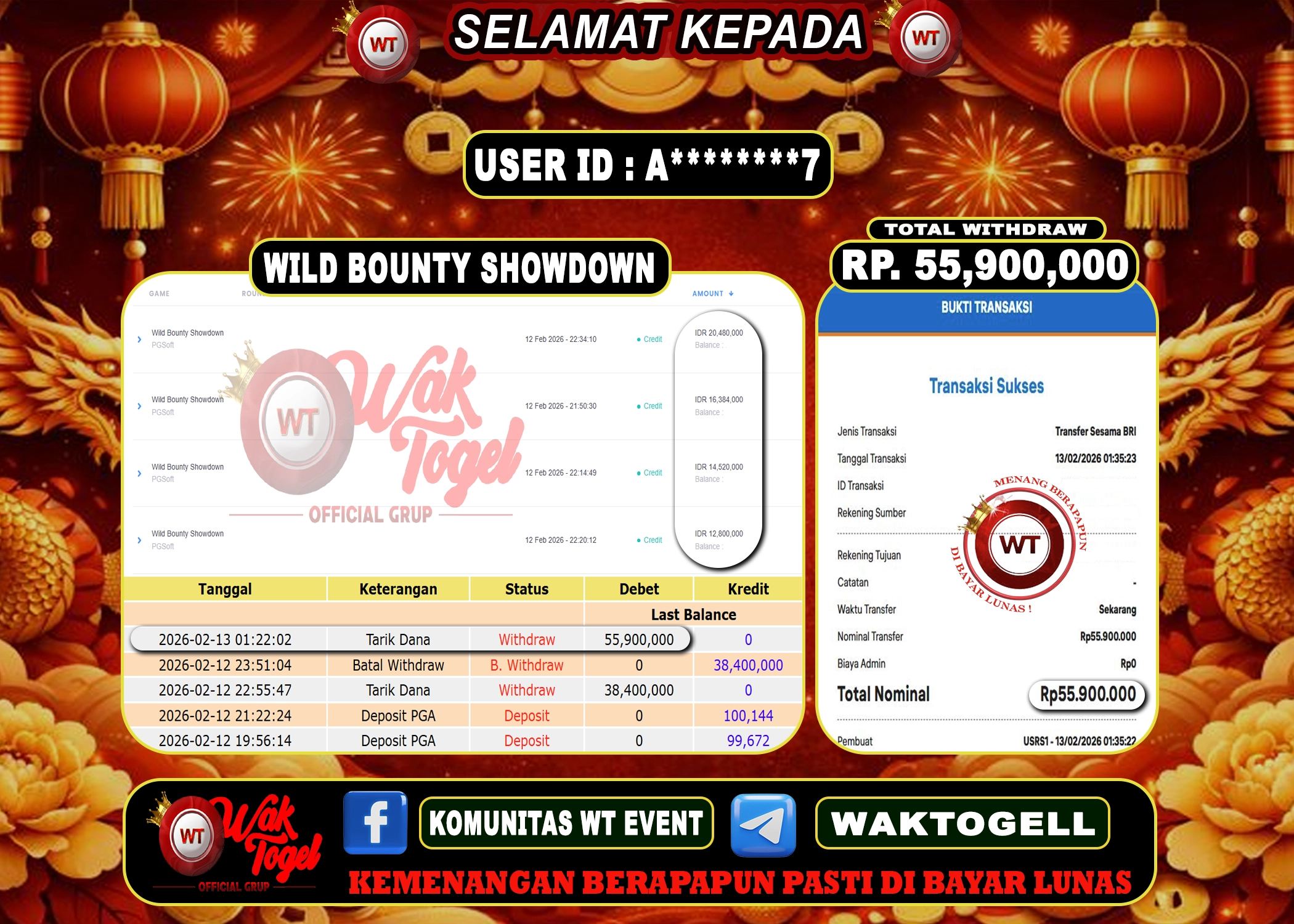 JACKPOT SLOT WAKTOGEL BUKTI PEMBAYARAN SLOT WAKTOGEL By JPWT Februari 13, 2026 0 comments 2 min read BUKTI PEMBAYARAN SLOT WAKTOGEL BUKTI PEMBAYARAN SLOT WAKTOGEL RP. 55,900,000 – GAME : SLOT WILD BOUNTY SHOWDOWN (USER ID : A********7) TANGGAL |12-02-2026| CASH LUNAS […]