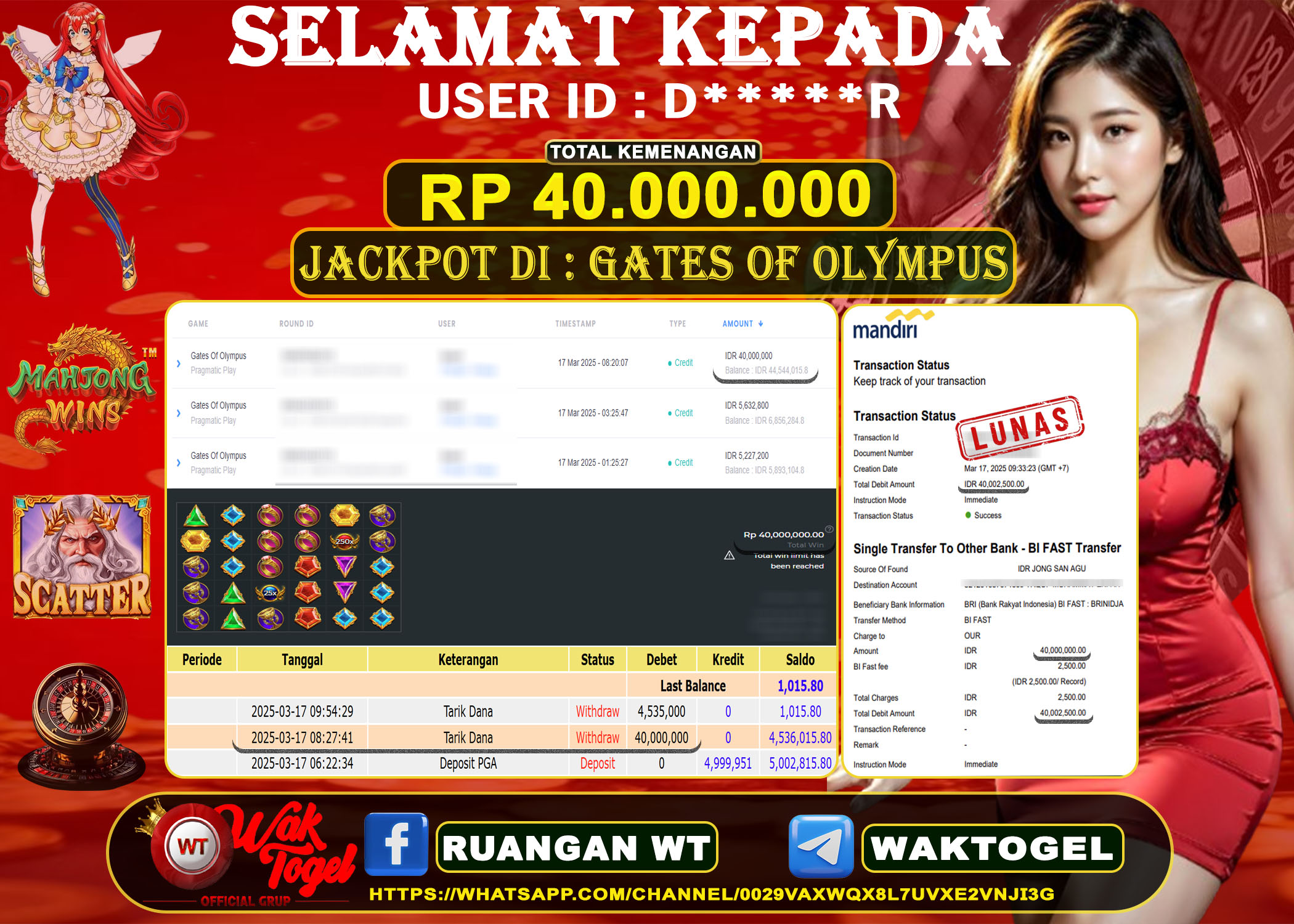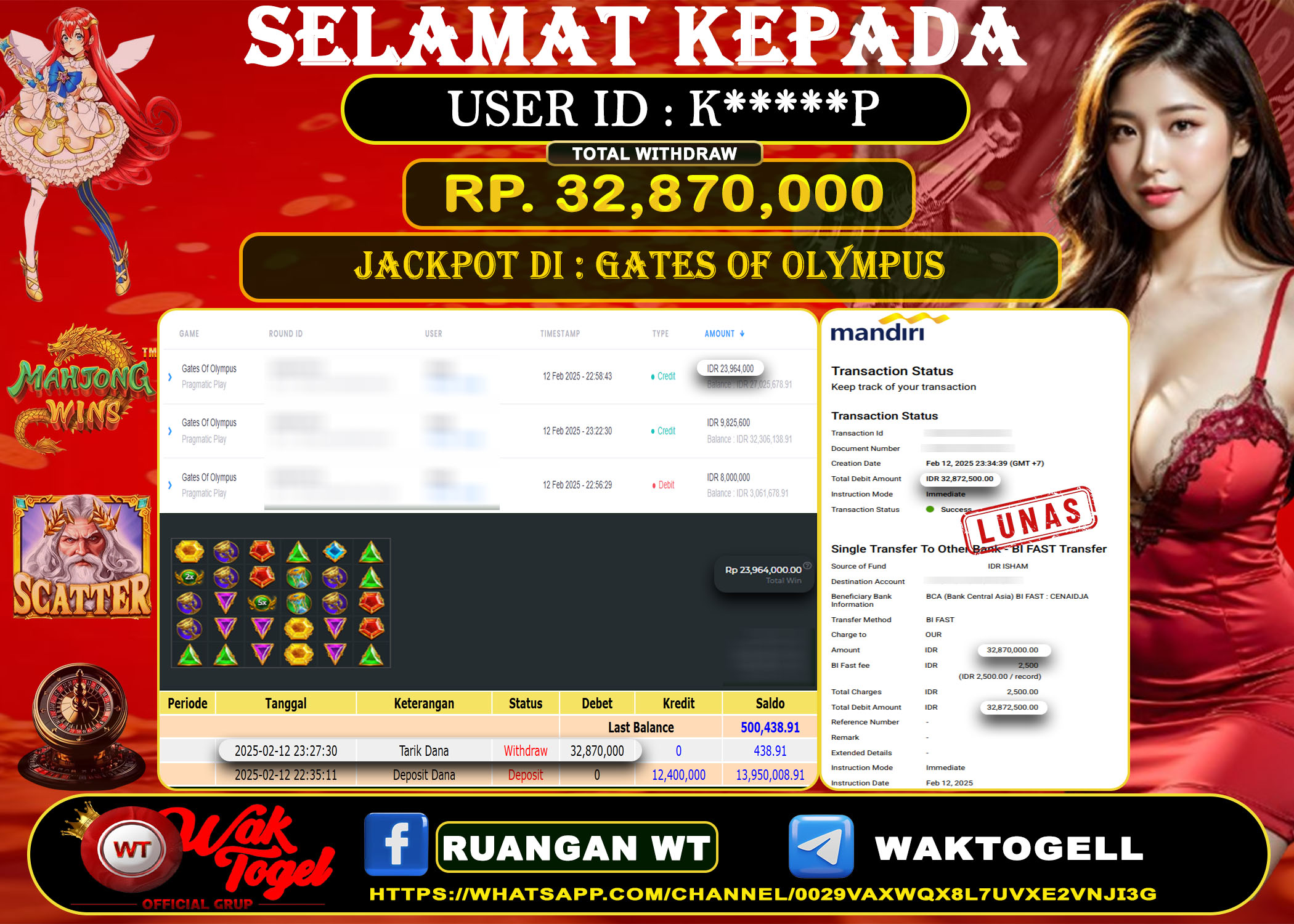 JACKPOT SLOT WAKTOGEL BUKTI PEMBAYARAN SLOT WAKTOGEL By JPWT Februari 14, 2025 0 comments 2 min read BUKTI PEMBAYARAN SLOT WAKTOGEL BUKTI PEMBAYARAN SLOT WAKTOGEL RP. 23,300,000 – GAME : SLOT GATES OF OLYMPUS 1000 (USER ID : N*********9) TANGGAL |14-02-2025| CASH […]