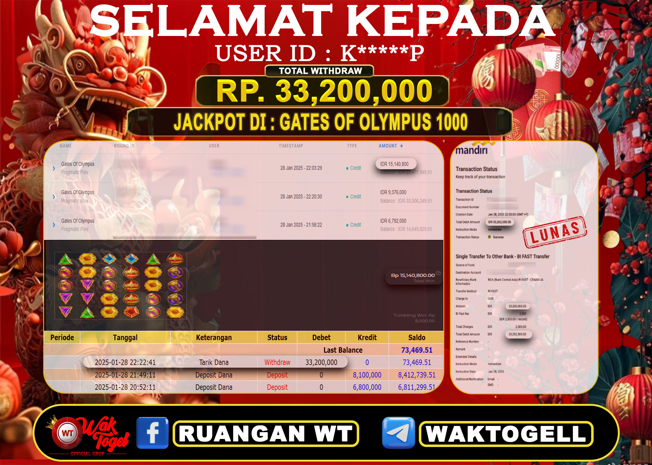 JACKPOT SLOT WAKTOGEL BUKTI PEMBAYARAN SLOT WAKTOGEL By JPWT Januari 29, 2025 0 comments 2 min read BUKTI PEMBAYARAN SLOT WAKTOGEL BUKTI PEMBAYARAN SLOT WAKTOGEL RP. 33,200,000 – GAME : SLOT GATES OF OLYMPUS (USER ID : K*****P) TANGGAL |28-01-2025| CASH LUNAS […]