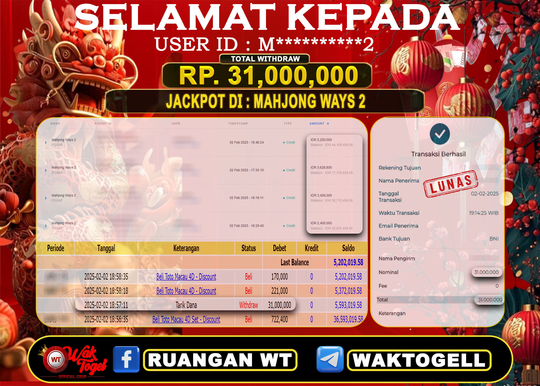 JACKPOT SLOT WAKTOGEL BUKTI PEMBAYARAN SLOT WAKTOGEL By JPWT Februari 2, 2025 0 comments 2 min read BUKTI PEMBAYARAN SLOT WAKTOGEL BUKTI PEMBAYARAN SLOT WAKTOGEL RP. 31.000.000 – GAME : SLOT MAHJONG WAYS 2 (USER ID : M**********2) TANGGAL |02-02-2025| CASH LUNAS […]