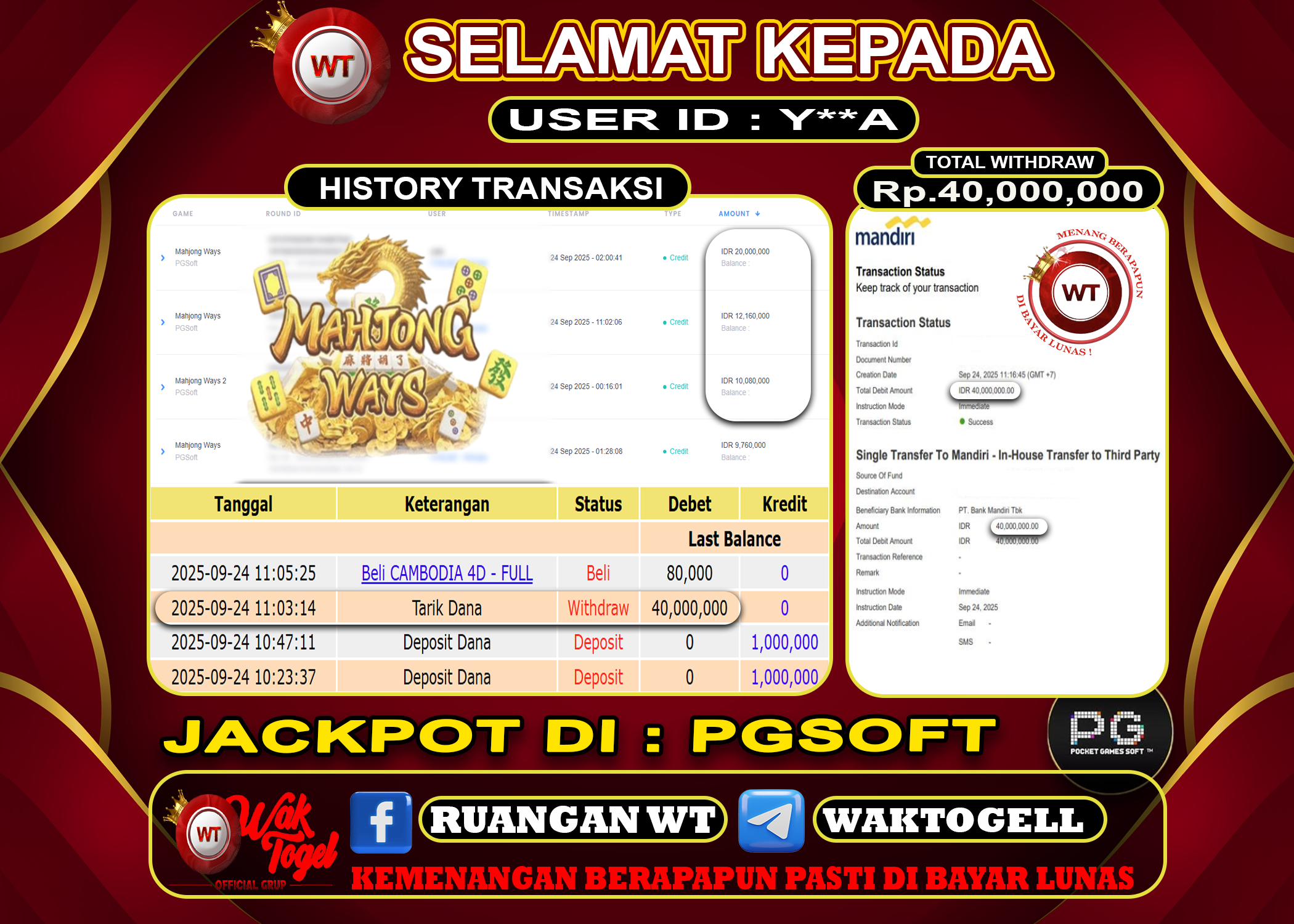 Bukti Pembayaran Jackpot Waktogel Untuk SLOT, TOGEL , LIVECASINO