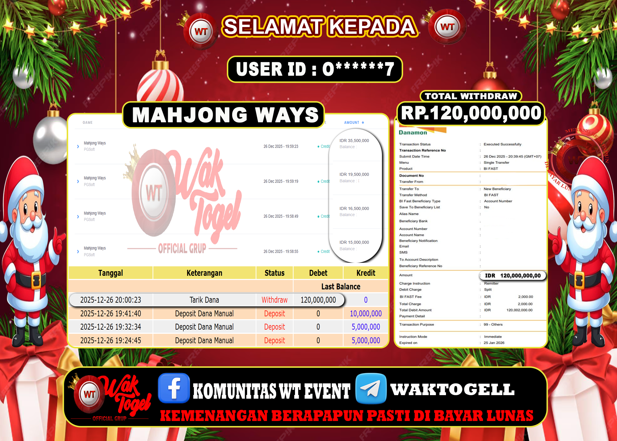 BUKTI PEMBAYARAN SLOT WAKTOGEL BUKTI PEMBAYARAN SLOT WAKTOGEL RP. 120,000,000 – GAME : SLOT MAHJONG WAYS  (USER ID : O******7 TANGGAL |26-12-2025| CASH LUNAS ! […]