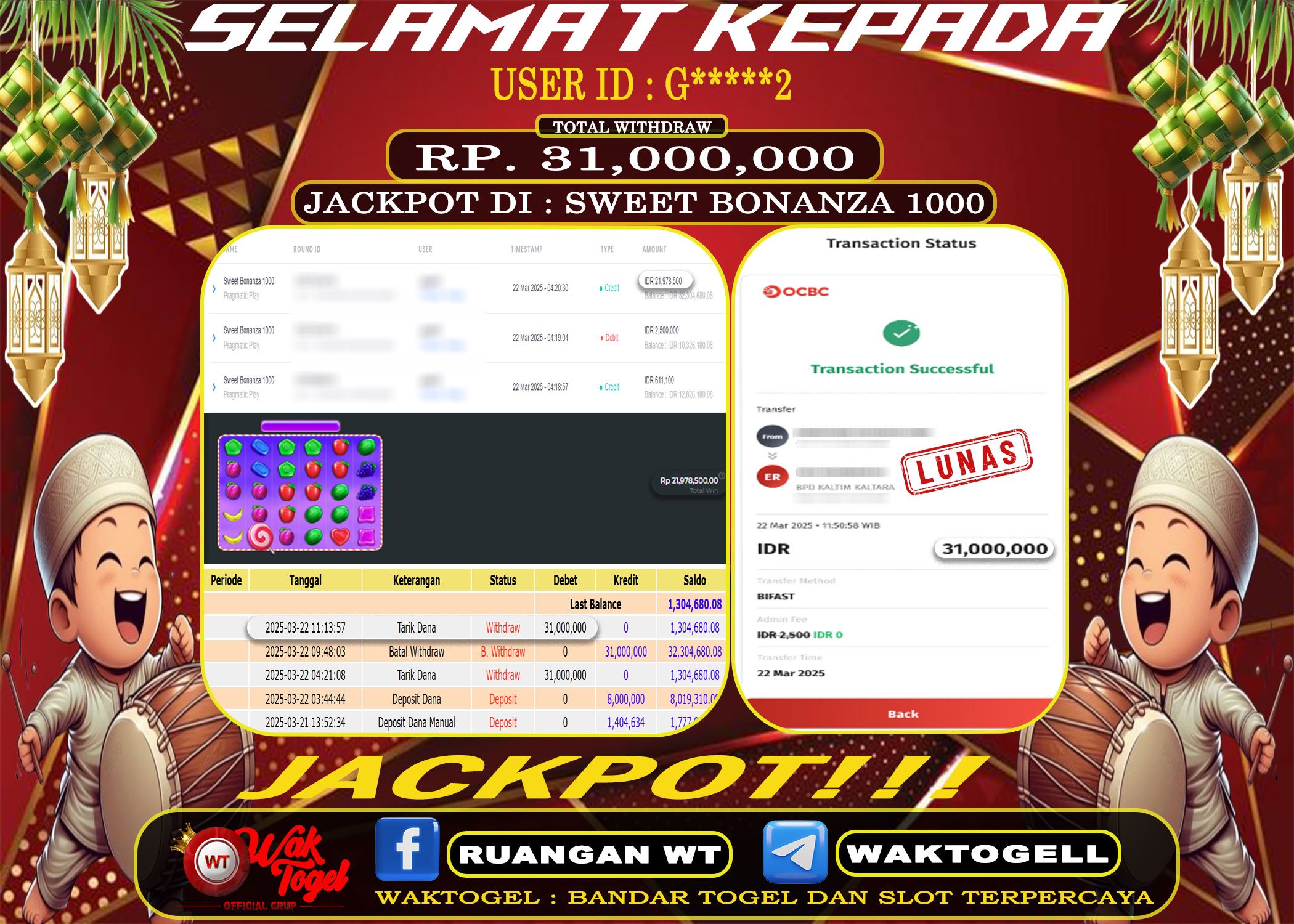JACKPOT SLOT WAKTOGEL BUKTI PEMBAYARAN SLOT WAKTOGEL By JPWT Maret 23, 2025 0 comments 2 min read BUKTI PEMBAYARAN SLOT WAKTOGEL BUKTI PEMBAYARAN SLOT WAKTOGEL RP. 50,000,000 – GAME : SLOT SWEET BONANZA 1000 (USER ID : G*****2) TANGGAL |23-03-2025| CASH LUNAS […]