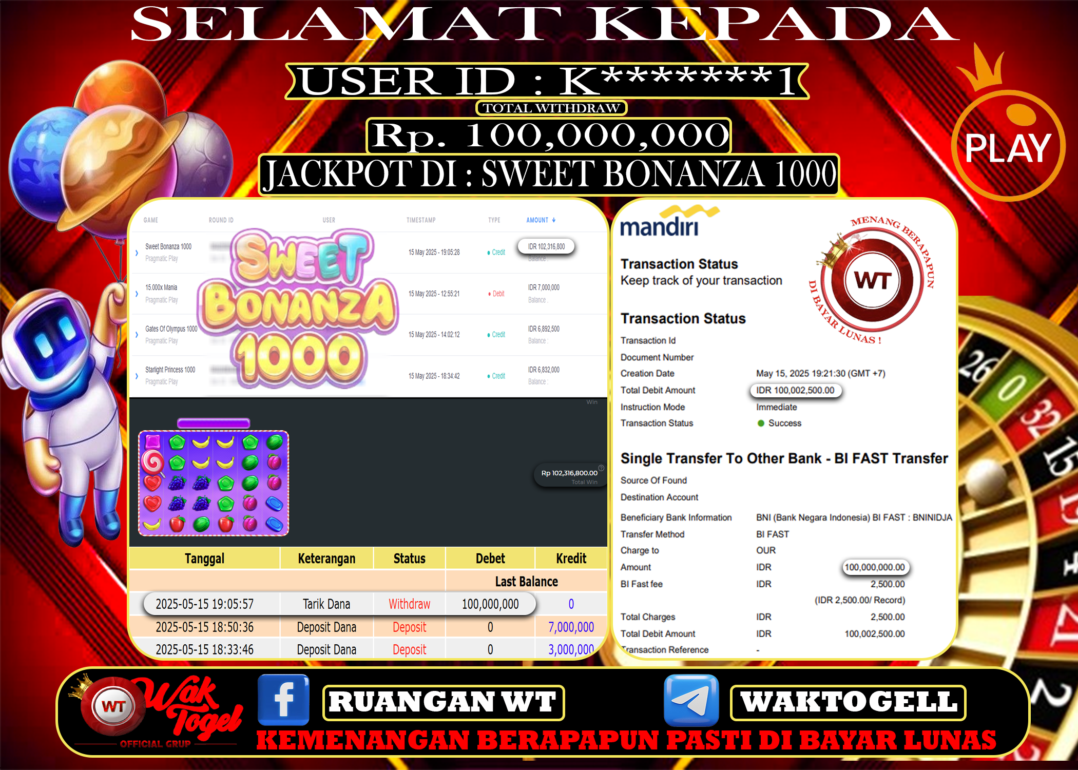 JACKPOT SLOT WAKTOGEL BUKTI PEMBAYARAN SLOT WAKTOGEL By JPWT April 10, 2025 0 comments 2 min read BUKTI PEMBAYARAN SLOT WAKTOGEL BUKTI PEMBAYARAN SLOT WAKTOGEL RP. 101,139,500 – GAME : SLOT SWEET BONANZA 1000 (USER ID : K*******1) TANGGAL |10-04-2025| CASH LUNAS […]
