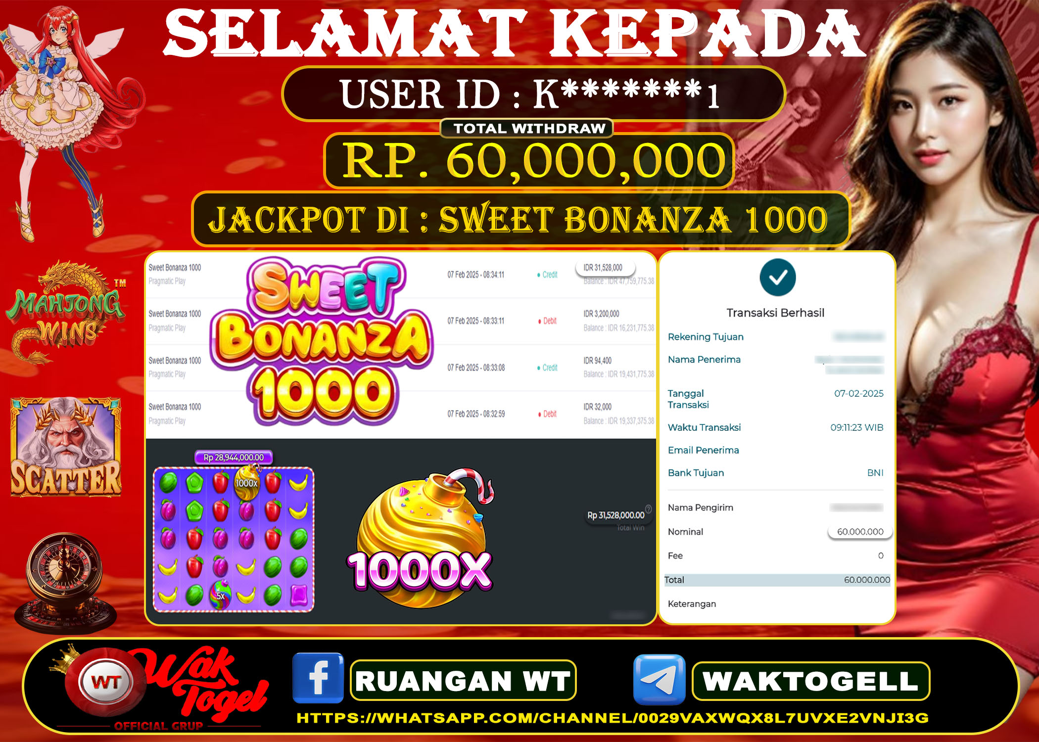 JACKPOT SLOT WAKTOGEL BUKTI PEMBAYARAN SLOT WAKTOGEL By JPWT Februari 12, 2025 0 comments 2 min read BUKTI PEMBAYARAN SLOT WAKTOGEL BUKTI PEMBAYARAN SLOT WAKTOGEL RP. 70,000,000 – GAME : SLOT SWEET BONANZA 1000 (USER ID : K*******1) TANGGAL |12-02-2025| CASH LUNAS […]