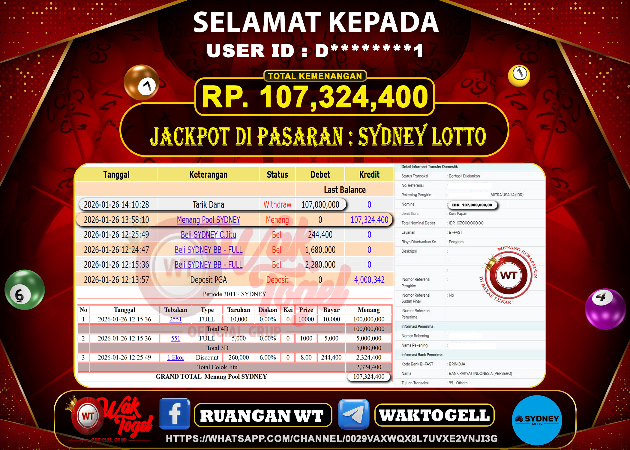 BUKTI PEMBAYARAN SYDNEY WAKTOGEL BUKTI PEMBAYARAN SYDNEY LOTTO WAKTOGEL RP. 107.324.400 – GAME : TOGEL SYDNEY LOTTO (USER ID : D********1) TANGGAL |26-01-2026| CASH LUNAS […]